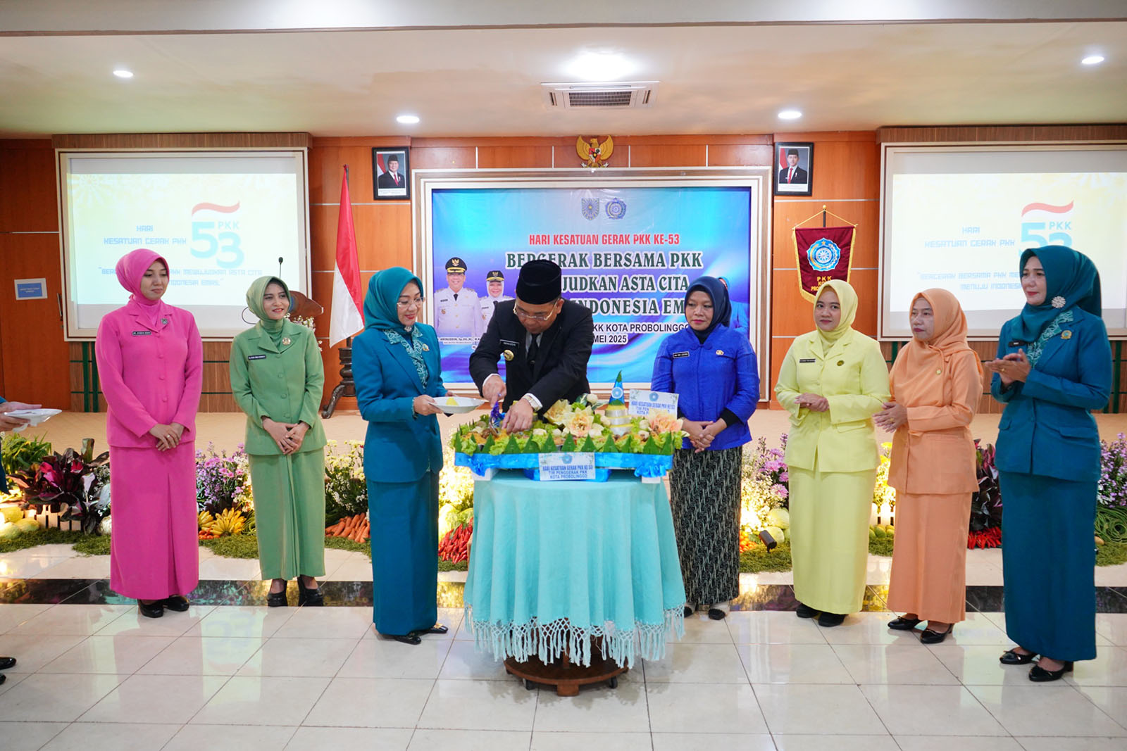 KANIGARAN - Masih dalam rangkaian kegiatan peringatan Hari Kesatuan Gerak (HKG) ke-53 PKK, Tim Penggerak PKK Kota Probolinggo menggelar resepsi bersama para kader, Jumat (23/5) siang di Puri Manggala Bhakti. Hadir dalam acara tersebut Wali Kota Probolinggo dr. Aminuddin yang didampingi oleh Ketua TP PKK dr. Evariani Aminuddin serta Wakil Wali Kota Ina Dwi Lestari. Tema HKG PKK tahun ini adalah Bergerak Bersama PKK Mewujudkan Asta Cita Menuju Indonesia Emas.