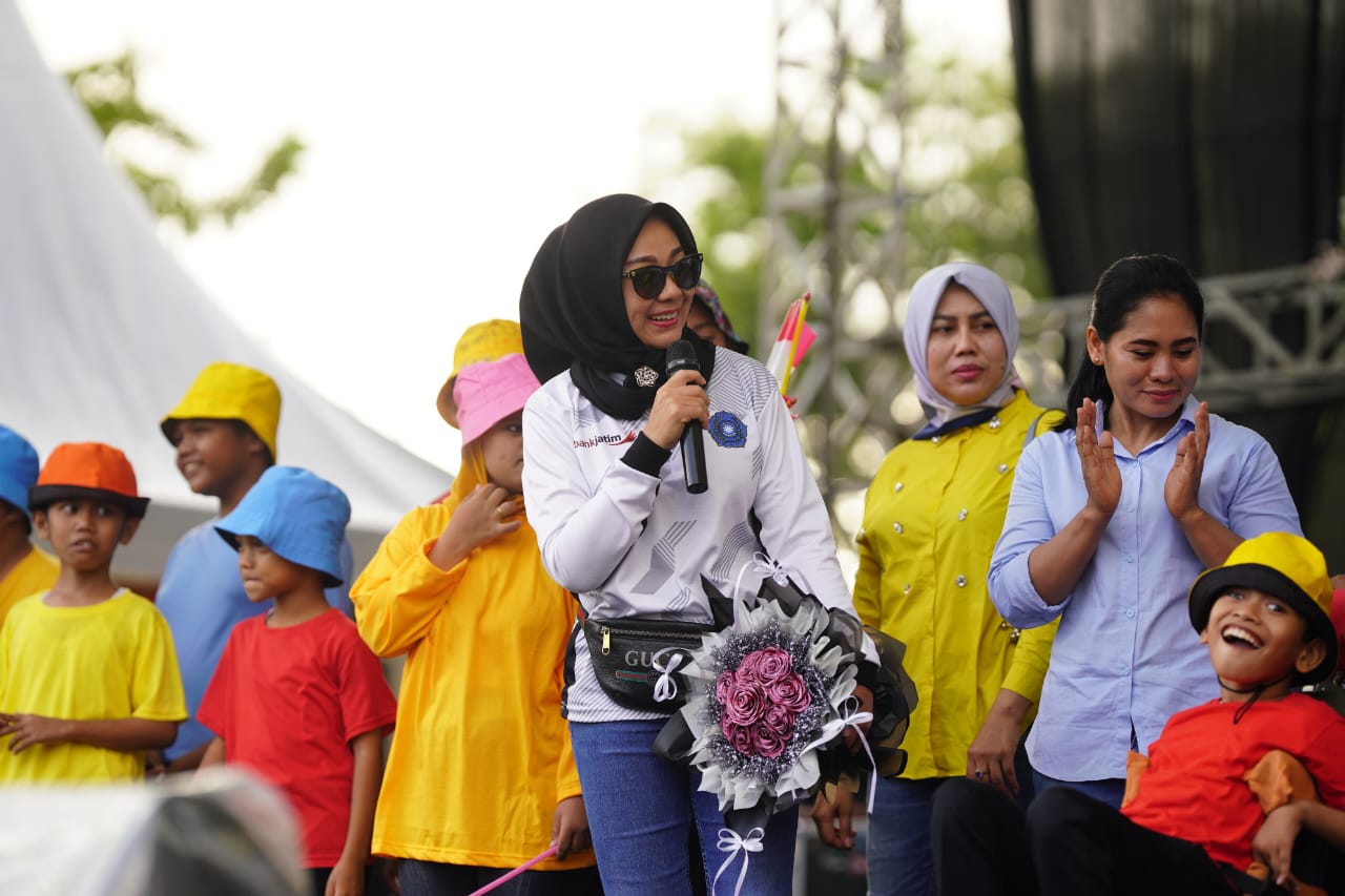Ketua TP PKK Kota Probolinggo dr Evariani Aminuddin, yang menyaksikan gelaran bersama pengurus PKK lainnya hanyut dalam penampilan memukau di Sore Inklusifest Semipro 2025. Evariani pun berinteraksi dengan anak-anak dan orang-orang hebat di Kota Probolinggo ini.