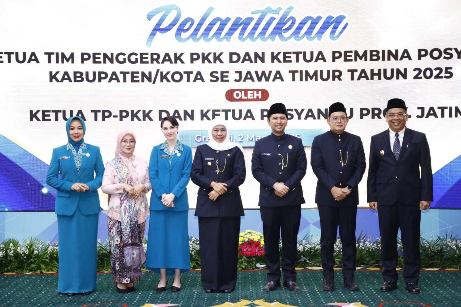 Acara tersebut juga dihadiri oleh Gubernur Jatim Khofifah Indar Parawansa, Wagub Jatim Emil Dardak, Sekda Jatim Adhy Karyono, Bupati dan Wali Kota periode 2025-2030 se Jatim serta para pejabat di lingkungan Pemprov Jatim dan para pengurus TP PKK Jatim.