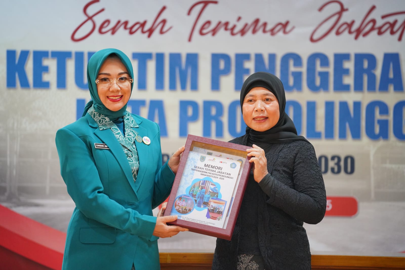 Serah Terima Jabatan Ketua Tim Penggerak PKK Kota Probolinggo dari Nurani Chafsah M. Taufik Kurniawan kepada dr. Evariani, dilangsungkan sore tadi, Senin (3/3) di Puri Manggala Bakti Kantor Wali Kota Probolinggo.